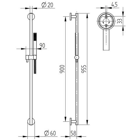 - mit Brausestange (Länge: 900 mm, Ø 20 mm)