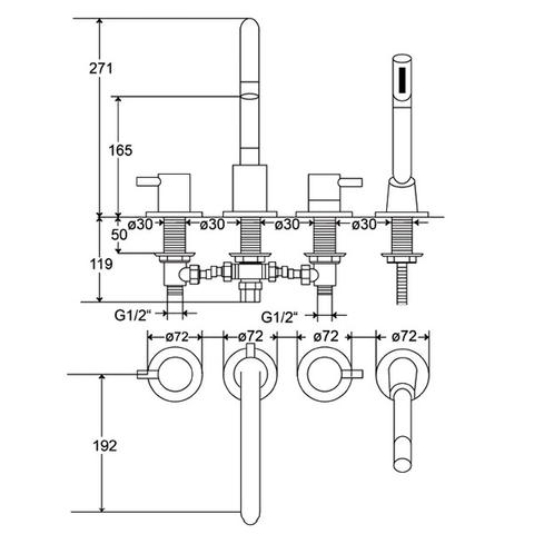 - hochwertige 4-Loch Wannen-Armatur für den Badewannenrand