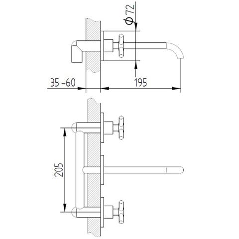 Maße: Höhe: 72 mm -Breite: 205 mm -Ausladung: 195 mm oder 245 mm