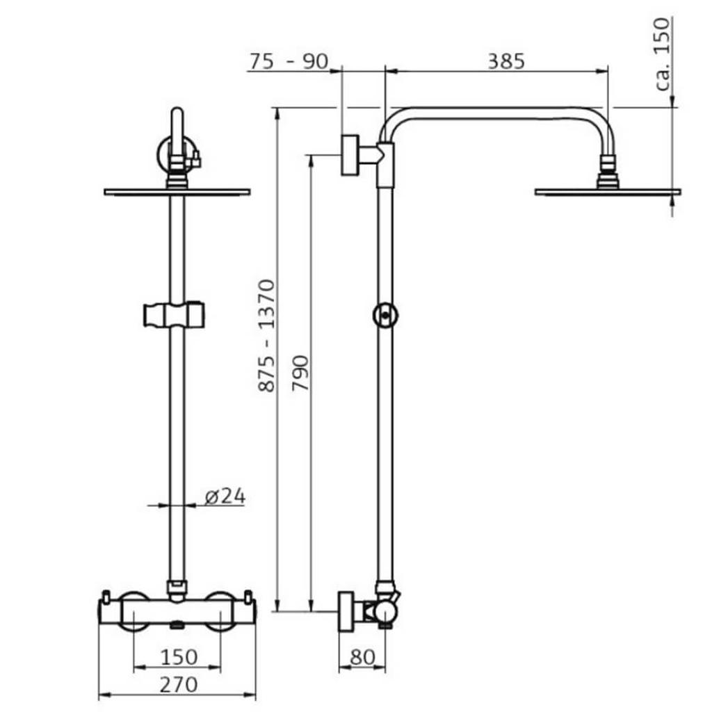 Maße: -Breite: 270 mm -Höhe: 875 - 1370 mm -Tiefe: 460 mm -Ausladung: 385 mm