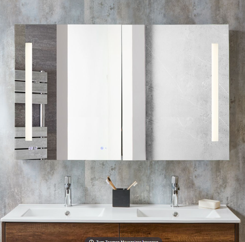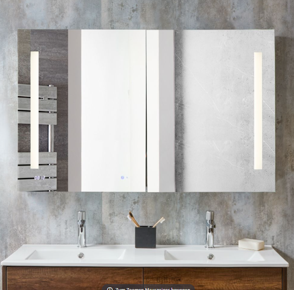 Dieser stilvolle Spiegelschrank aus Aluminium bietet Ihnen reichlich Platz für Ihre Badezimmerutensilien und sorgt für einen ordentlichen, aufgeräumten Look. Er überzeugt mit einer energiesparenden LED-Beleuchtung welche über einen Bewegungssensor Ein- und Ausgeschaltet werden kann. Die Spiegeltüren verfügen über Scharniere mit Soft-Close Mechanismus, welche ein Zuschlagen verhindern.